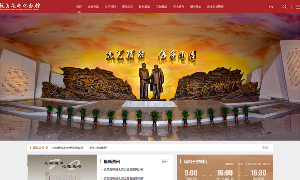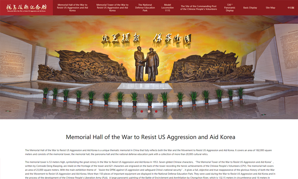 抗美援朝紀(jì)念館位于遼寧省丹東市鴨綠江畔的英華山上,與朝鮮民主主義人民共和國新義州市隔江相望,是全國唯一全面反映中國人民抗美援朝戰(zhàn)爭和抗美援朝運(yùn)動歷史的專題紀(jì)念館。