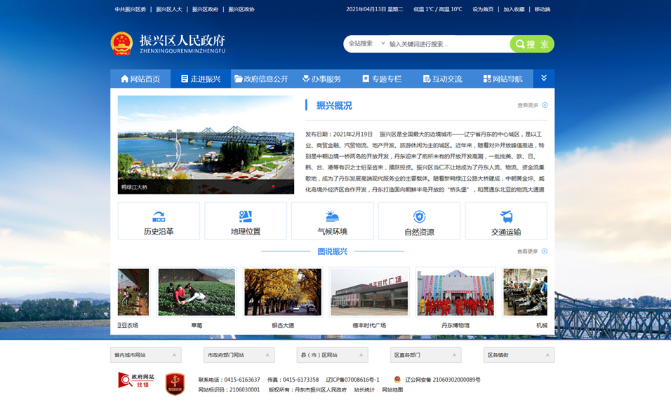 振興區(qū)是全國最大的邊境城市——遼寧省丹東的中心城區(qū),是以工業(yè)、商貿(mào)金融、汽貿(mào)物流、地產(chǎn)開發(fā)、旅游休閑為主的城區(qū)。近年來,隨著對外開放峰值推進,特別是中朝邊境一橋兩島的開放開發(fā),丹東迎來了前所未有的開放開發(fā)高潮,一批批美、歐、日、韓、臺、港等有識之士紛至沓來,踴躍投資。振興區(qū)當(dāng)仁不讓地成為了丹東人流、物流、資金流集散地,成為了丹東發(fā)展高端現(xiàn)代服務(wù)業(yè)的主要載體。隨著新鴨綠江公路大橋建成,中朝黃金坪、威化島境外經(jīng)濟區(qū)合作開發(fā),丹東打造面向朝鮮半島開放的“橋頭堡”,和貫通東北亞的物流大通道戰(zhàn)略的全面實施,振興區(qū)成為了遼寧對外開放新高地。